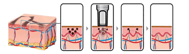 Quanto mais rápido for o pulso em um laser de remoção, mais eficientes e seguros serão os resultados. Através dos pulsos ultracurtos de apenas 6ns (nanossegundos), o Q-CLEAN age fragmentando as moléculas dos pigmentos, através da verdadeira ação FOTOACÚSTICA, e evita riscos, com o mínimo de dano térmico (aquecimento da pele).